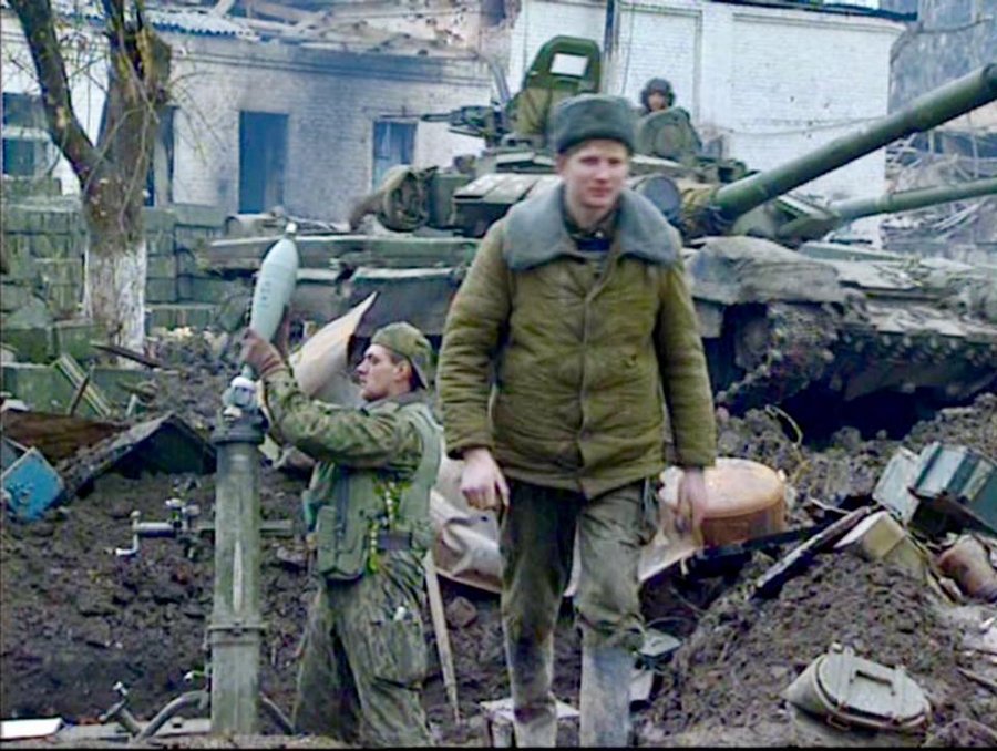 Прогресс был медленным. С самого начала боевой дух среди русских войск, многие из которых были новобранцами, был низким. Целые подразделения, все из которых были недостаточно укомплектованы, игнорировали приказы продвигаться и в некоторых случаях саботировали собственное оборудование. От участия отказались более 800 солдат и офицеров, 83 из которых впоследствии были осуждены военно-полевыми судами. Остальные были выписаны. Один из самых высокопоставленных офицеров России, генерал-лейтенант Лев Рохлин, позже отказался от награды и звания Героя Российской Федерации за участие в конфликте. 900:05 Передовые танки Т-72 российского подразделения, один из которых оснащен системой разминирования, останавливаются во время первоначального наступления на столицу Чечни в декабре 1994 года.