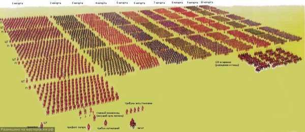 ЦТ — центурион, 3 — знаменосец, П — помощник центуриона, Г — горнист, Т — трубач.
