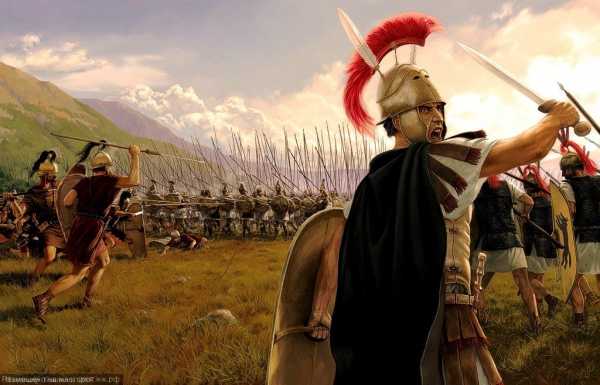 Как ни очевидны выгоды манипуляторного построения фаланги, чтобы принять такое построение, недостаточно догадаться о нем, знать его. Нужна предпосылка о высшей ступени доверия к товарищам, о высших достижениях в отношении дисциплины. Недостаточно дисциплинированному греку только могучее чувство локтя, только осязаемая очевидность отсутствия щелей в фаланге давала уверенность, что в момент схватки он не будет предоставлен сам себе. Римский милиционер, выросший в условиях железной дисциплины, наступал с готовым разрывом в сплошной фаланге, убежденно веря, что в момент столкновения этот разрыв будет заполнен, и два суровых проводника римской дисциплины — два центуриона — фельдфебеля, стоявшие позади в манипуле принципов, обязанные скомандовать и обязательно провести в разрыв своих принципов, имели достаточно авторитетный вид, чтобы поддержать это доверие.