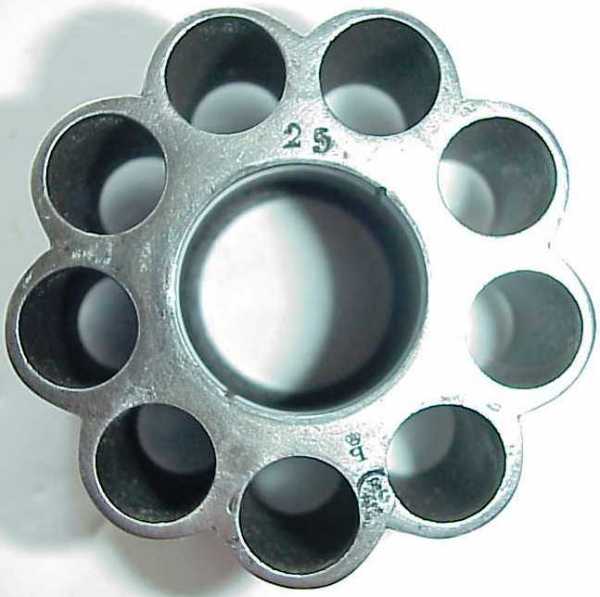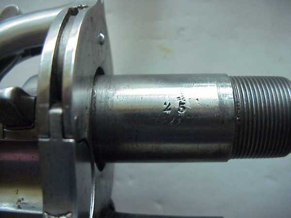 На передней торцевой поверхности барабана нанесен серийный номер и бельгийские клейма. Серийный номер 25 нанесен на поворотной дверце рамки.