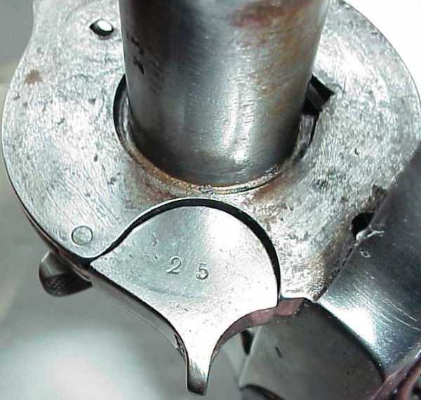 Кроме того серийные номера нанесены на многие другие части оружия, даже на основании крепления кольца для револьверного ремешка.
