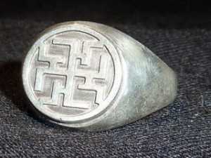 - Кольца и перстни. Часто это мужские перстни с нанесёнными знаками богов или символами. Отдельно выделяются серебряные обручальные кольца со славянской символикой. Издревле было принято молодожёнам обмениваться кольцами. Муж жене дарил золотое, поскольку это солнечный метал, имеющий мужскую энергию. Женщина мужчине дарила серебряное кольцо, поскольку это лунный метал с женской энергетикой.