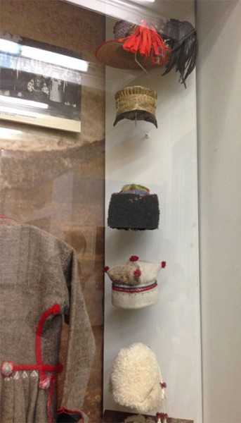 Головные уборы замужних женщин обшивались по краю стеклянными бусами, поверх надевали корону-кокошник или кику, а зимой шапку с меховым околышем.