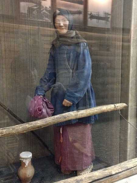 Ну а это настоящая джинсовая одежда. Окрашивание с помощью индиго тоже было распространено, так что это совсем не прерогатива американского континента. Не Левис, но вполне себе настоящая джинсовая ткань — носили в деревне на работу.