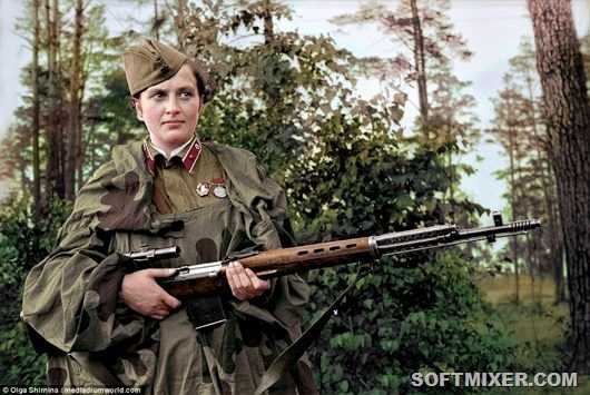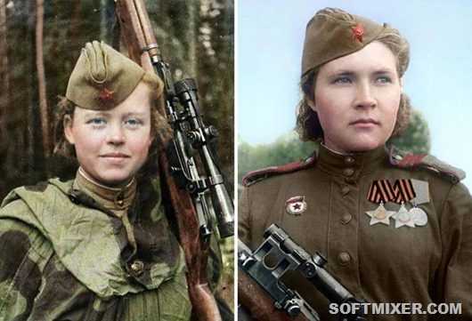Ниже — 13 талантливо раскрашенных фото советских женщин-снайперовНаиболее известная из всех — Людмила Павличенко. За полтора года — с начала 1941 по лето 1942 во время боев за Одессу и Севастополь она застрелила 309 солдат и офицеров противника (большинство — румыны). За это западная пресса прозвала ее «Леди смерть».
