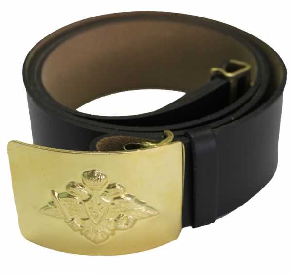 Широкий выбор ремней для различных родов войск, которые регулируются под любой обхват пояса фиксируются стилизованной бляхой.