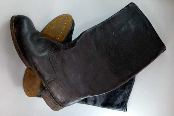 Сапоги юфтевые. Изначально сапоги были единственной обувью русского солдата: ботинки с обмотками были приняты на снабжение только в начале 1915 года, когда армия резко прибавила в численности, и сапог перестало хватать. Солдатские сапоги изготавливались из юфти и в Красной Армии поступали на снабжение всех родов войск.