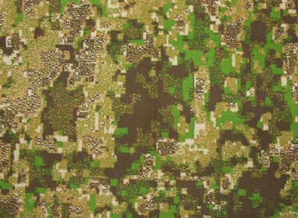 b. Камуфляжи с пиксельными пятнами, сгруппированными в группы — 2-е поколение (1990-е — 2005).