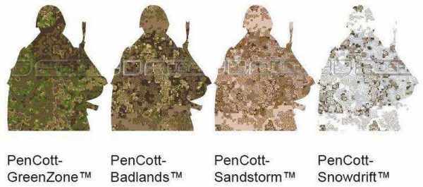 Как и большинство современных камуфляжей, Пенкотт существует в нескольких цветовых вариациях.