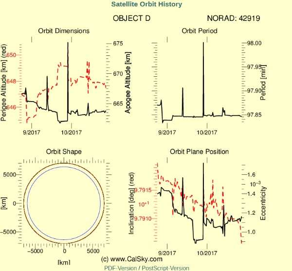 Аппарат “Космос-2519”, про который идет речь в новости, является уже четвертым маневрирующим российским спутником за последние годы. До него орбиту изменяли “Космос-2491”, запущенный в 2013, “Космос-2499” (выведен в 2014, и я про него уже рассказывал) и “Космос-2504” (2015). Внешний вид и назначение спутников официально не объявлялись, но многое можно было сказать по их поведению на орбите. По находящимся в открытом доступе элементам орбиты TLE можно было определить, что спутники сближались с другими российскими объектами. “Космос-2499” подходил близко к разгонному блоку “Бриз-КМ”, который вывел его на орбиту. “Космос-2504” также сблизился со своим разгонным блоком и, похоже, ударился или состыковался с ним – орбита разгонного блока немного изменилась. В 2017 году “Космос-2504” случайно или намеренно пролетел примерно в километре от китайского космического мусора.