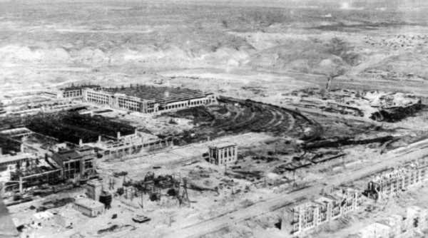 Разрушенный боями Сталинградский тракторный завод с высоты птичьего полета.