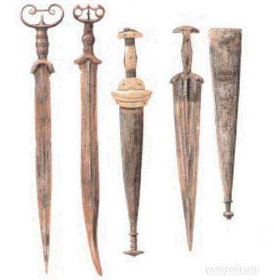 Самую большую известность в классической древности получили следующие виды колюще-рубящих мечей: