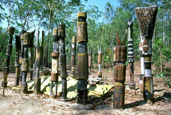 Австралия. Ритуальные идолы на захоронении аборигенов племени Тиви. Остров Мелвилл.