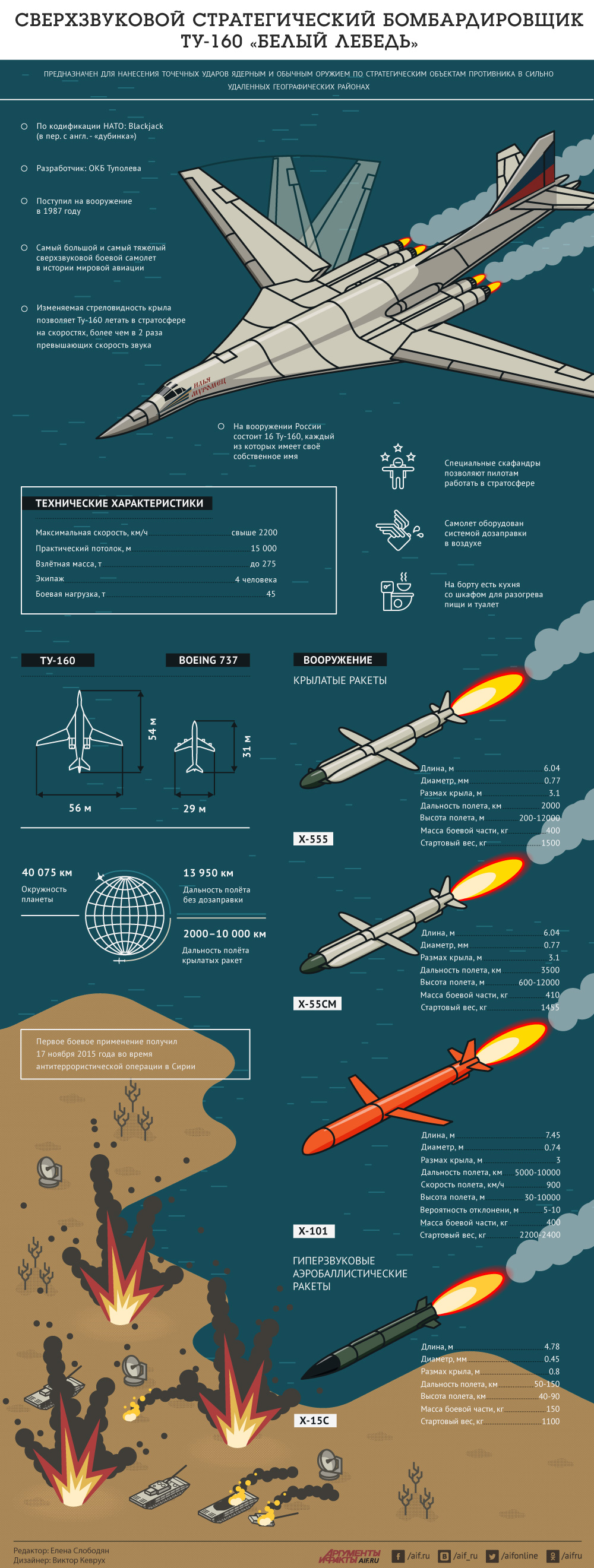 Сверхзвуковой бомбардировщик Ту-160 «Белый лебедь». Инфографика | Инфографика | Вопрос-Ответ