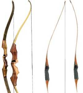 Рекурсивные луки (слева) и лонгбоу (справа) – два наиболее распространенных сегодня типа традиционных луков.