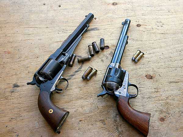 Револьвер обычно 45-го или меньшего калибра, чаще всего — реплики классических «Кольтов» конца XIX века или современные «Ругеры» (модель Ruger Vaquero). Револьверы модифицируются — например, заводской курок заменяют специальным, вытянутым вверх, чтобы было удобно «цеплять» его второй рукой для взвода. Нередко заменяют и дуло — стальное на алюминиевое — для облегчения конструкции. Правда, эти модификации предназначены именно для fanning draw. Те, кто работает одной рукой и взводит курок пальцем, предпочитают серийное оружие.