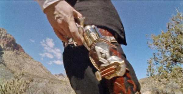 Начало движения. Револьвер ещё в кобуре, но большой палец уже лёг на курок, а рука подалась вверх.