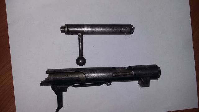 Стебель затвора с рукояткой необходим для удобства действия затвором. Имеет два маленьких и два больших выреза.