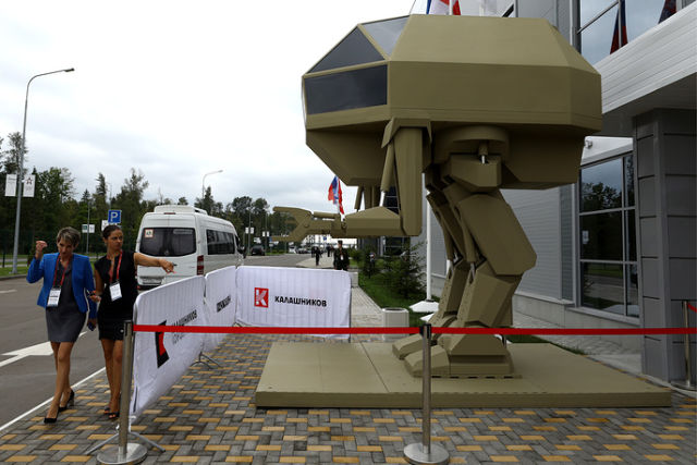 © Михаил Терещенко/ТАССКонцепт управляемого прямоходящего комплекса представил концерн «Калашников». Перспективная цель применения антропоморфного комплекса — решение инженерных задач. Машина состоит из кабины, где будет сидеть водитель, установленной на двуногое шасси. Робот имеет две дистанционно управляемых руки-манипулятора. Высота машины достигает четырех метров. Сообщалось, что на следующей «Армии» будет представлен действующий образец машины, который уже будет ходить.