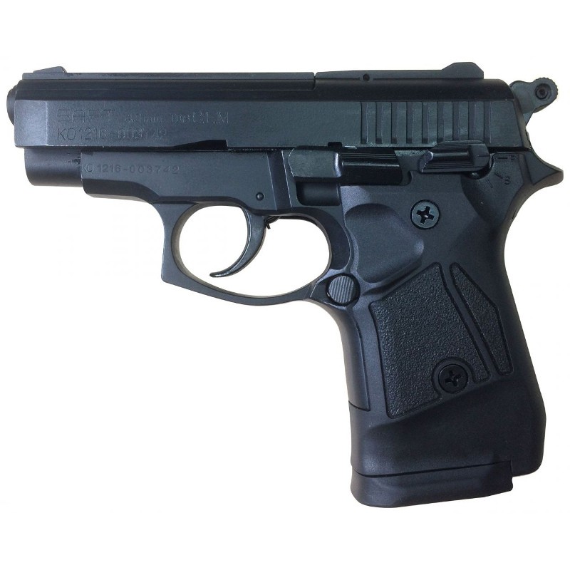 Пистолет лучший, из Турции. Небольшой, в ладони находится уверенно, прицел отличный. Обойма на 10 боезапасов, но у меня старая, правда, на 14 пуль. За время эксплуатации настрелял 1500 патронов, и ничего не поломалось.
