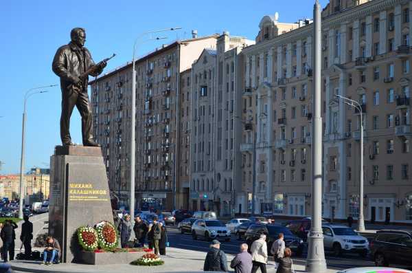 Памятник Михаилу Калашникову открыли в Москве 19 сентября на пересечении Садовой-Каретной и Долгоруковской улиц. Его автором стал скульптор Салават Щербаков. Монумент открывал в том числе министр культуры Владимир Мединский, который заявил, что Михаил Калашников это «[изобретатель Иван] Кулибин XX века» и является «культурным брендом России».