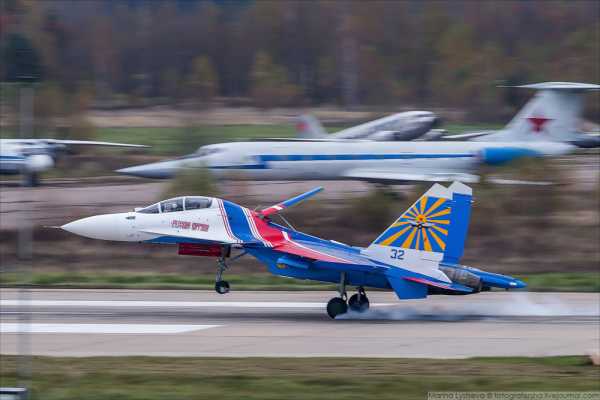Борт №32 пилотирует гвардии подполковник Сергей Щеглов, командир АГВП «Русские витязи», военный летчик 1 класса.