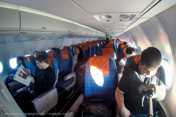 02. Салон. На улице +30. Заходим в салон. Жара. Дышать просто нечем. Стюардессы успокаивают журналистов: «Сейчас взлетим, все будет нормально». Ага, взлетели, вентиляция и кондиционер так и не заработали. Стюардессы рассказывали про то, что «самолет нагрелся» и скоро все будет хорошо. после полета один из членов экипажа прямо сказал: «Неделю назад кондиционер полетел, так и не починили.» Интересно, как чувствуют себя пассажиры регулярных рейсов на этом самолете?
