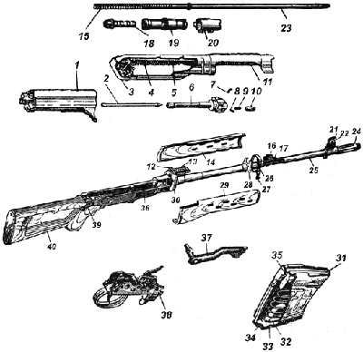 39 — чека крышки 6В1. сб. 1-2; 40 — приклад 6В1. сб. 7.