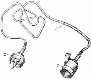 Зимнее устройство освещения сетки. Входит в комплект полного оснащения прицела как принадлежность. Предназначено для освещения прицельной сетки при температуре от 2°С и ниже. состоит из корпуса для батарейки (1), колпачка с упором (2) и экранированного провода (3).
