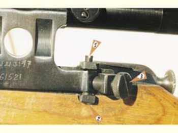 Винтовка пристреливается с упора, но между упором и оружием должна быть мягкая прокладка (рукавица или шапка). Иначе сотрясением при выстреле винтовку будет неуправляемо подбрасывать вверх.