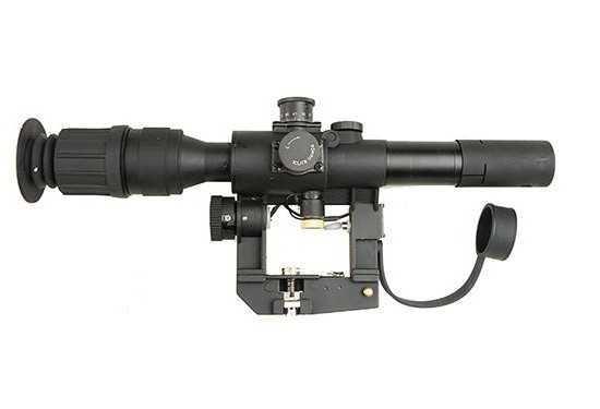 Предназначен для стрельбы по малогабаритным целям, находящимся на расстоянии до 1300 метров, устанавливается на специальное крепление типа «ласточкин хвост». Сохраняет полную работоспособность в интервале температур от — 50 до +50°C без запотевания оптики при их резком перепаде.