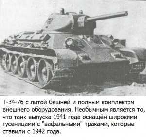 В 1942 году стала стандартной литая башня (в противоположность башне из катаного листа). Новая башня весила 4,4 т с диаметром кольца 1,38 м. Танк имел различные усовершенствования, сделанные с учетом опыта боевого применения. Командир танка и стрелок получили теперь по отдельному люку. Кроме того, был установлен новый корпусной 7,62-мм пулемет ДТ, более эффективный в ближнем бою. В начале 1942 года конструкторы разработали новую модель Т-34 – Т-34М. Она имела шасси, подобные шасси тяжелого танка КВ (но с катками меньшего диаметра), и совершенно новую форму корпуса и башни. Однако этот танк не был принят к производству. Единственный элемент его конструкции, который был использован для следующей модели – Т-34/76 образца 1943 года, – это башня шестиугольной формы. Как упоминалось выше, танк Т-34 образца 1943 года был разработан с учетом информации с поля боя, которая гласила, что одним из недостатков Т-34 был выступ башни, нависавший над кормовой частью корпуса. Это делало танк уязвимым перед немецкими пехотинцами из подразделений по борьбе с танками, которые забирались на танк и устанавливали плоские мины под выступ башни. Новая литая шестиугольная башня без выступа появилась на Т-34 образца 1943 года. Новая модель имела и другие новшества, в том числе увеличенный запас горючего и навариваемые компоненты броневых листов.