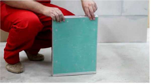 Прочный сплав алюминия и дверца из влагостойкого гипсокартона позволяют использовать люк во влажных помещениях.