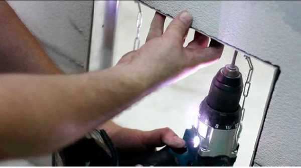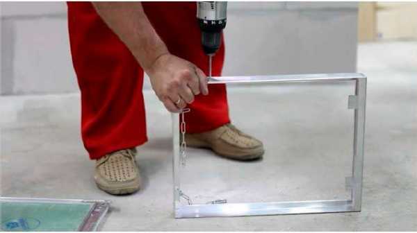 | 4. С обратной стороны перегородки по периметру проёма саморезами прикрепить направляющие. | |