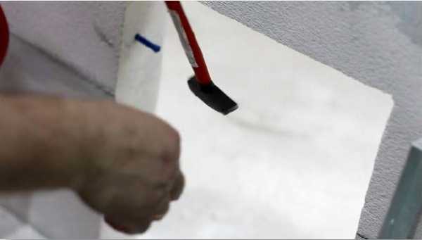 | 1. С помощью линейки и уровня отметить на перегородке место проёма люка. | |