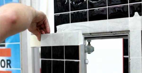 Открыть дверцу и удалить излишки герметика отовсюду, кроме боковых кромок плитки.