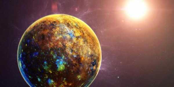 На Меркурии, самой приближенной к Солнцу планете, Солнце кажется в 3 раза большим, по сравнению с земным Солнцем. Днем поверхность Меркурия может быть ослепительно яркой. Но небо темное даже днем, потому что на НЕМ нет атмосферы, чтобы отбивать и рассеивать солнечный свет. Когда Солнце бьет по каменному ландшафту Меркурия, температура может достигать до 430 С. Но тем не менее ночью все тепло возвращается свободно в космос, а температура поверхности планеты может упасть до –173 С.