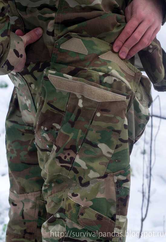 На голени расположены маленькие кармашки на молнии для хранения различных мелочей или жгута/перевязочного пакета.
