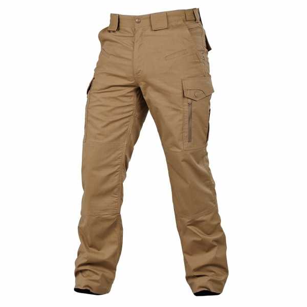 Тактические штаны и брюки — незаменимый атрибут современного человека, имеет отношение или интерес к милитари тематики, или же к спецслужбам. Они незаменимы в городе и на природе. Можно разделить тактические штаны и брюки по двум признакам: это большое количество грузовых карманов, или же наоборот, скрытые в швах карманы — и всегда гражданский стиль и крой, чтобы смешаться с толпой и быть незаметным. Тактические брюки и штаны для мужчин и женщин бывают больше ориентированы на использование в городе, а также наоборот — за городом. На краях передних карманов практически всегда стоят усиленные накладки для использования с ножами, фонарями и другим тактическим инструментом с карманными зажимами. На абсолютном большинстве моделей тактических штанов и брюк является тефлоновое (Teflon) покрытие, сделано с целью помешать появлению пятен и выгорания, а также отталкивает брызги и сдерживает небольшой дождь. У качественных брендовых тактических штанов всегда вшита ластовица, часто предусмотрен канал для фиксирующего шнура внизу штанины, а также внутренний карман для встроенных наколенников. Тройное усиление ключевых швов, другие швы обычно продублированы, что является незаменимым атрибутом в тактических штанах для их надежности. Ременные шлейки брюк усилены, что предусмотрено использованием широкого ремня. 100% Хлопок практически не используется в штанах тактических, кроме некоторых моделей джинсов и хлопчатобумажных версий обычных брюк, характеризующееся слабой надежностью хлопкового материала, а также его способностью впитывать и удерживать влагу с последующим натиранием