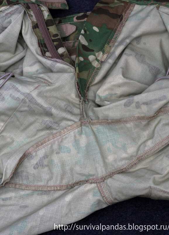 Очень интересный момент. Вместо пуговицы или кнопки используется текстильная защелка на липучке. В результате при ношении любого снаряжения на живот ничего давить не будет. Липучка выполена в цвет основного камуфляжа. Молния YKK.