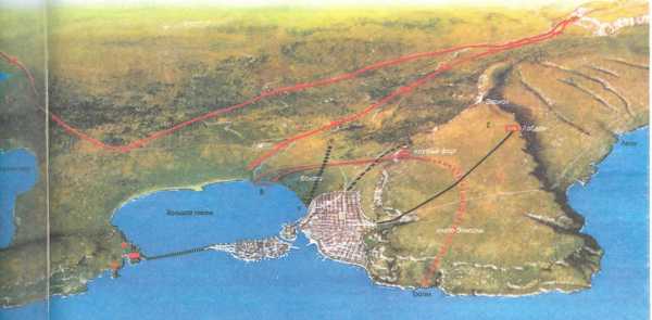 Афинская осада Сиракуз. Афиняне пытались окружить город двойной стеной. Сиракузяне старались помешать им, возводя поперечные стены X—X.Y—Y, и наконец им это удалось с помощью стены Z—Z