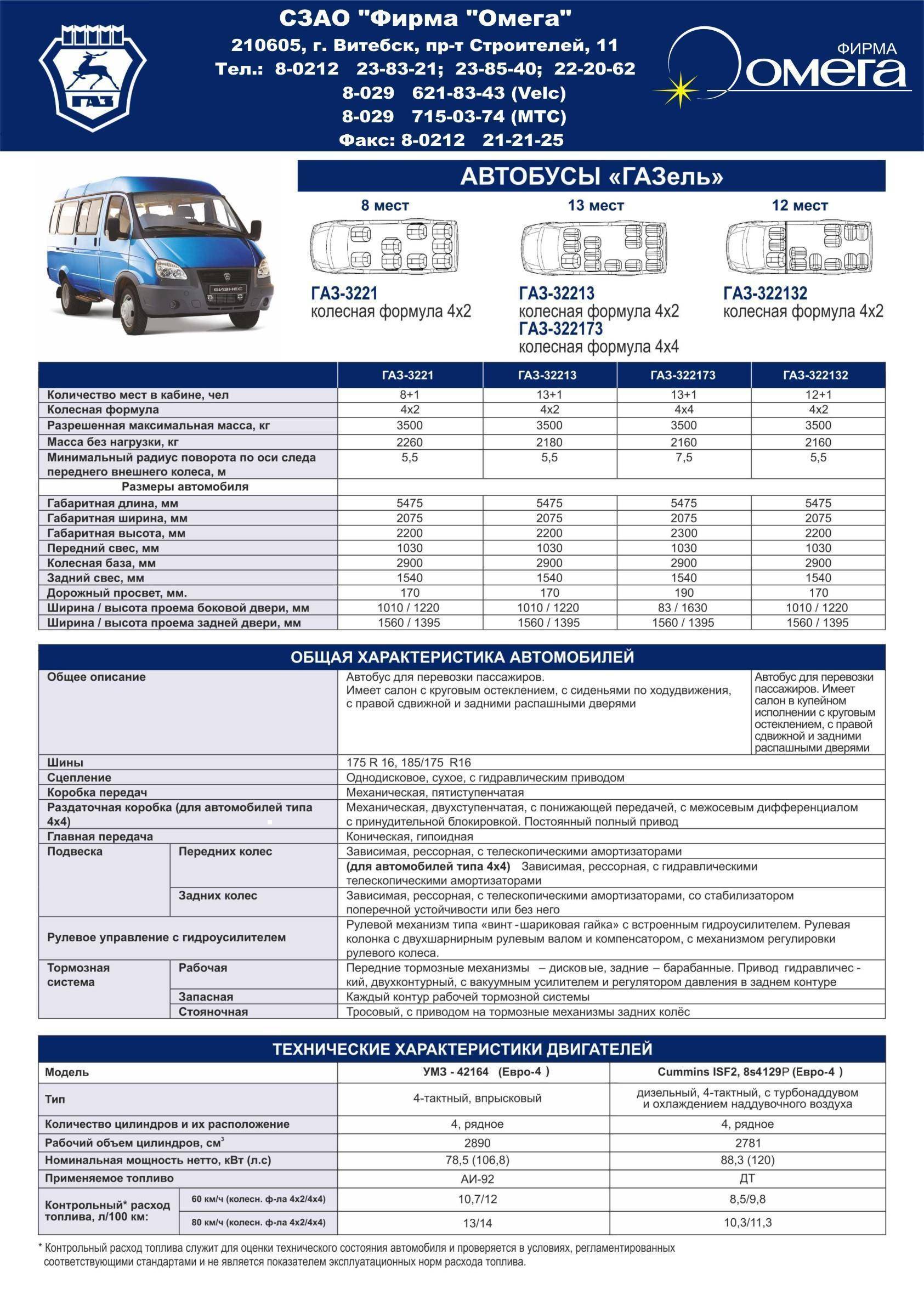 Технические характеристики Цельнометаллический автобус ГАЗ