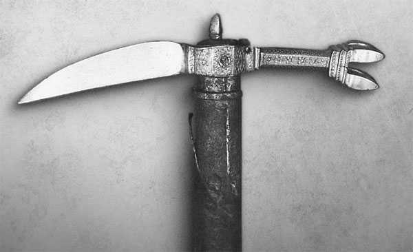 Весьма интересны образцы старинного оружия со скрытым, неожиданно выдвигающимся вперед клинком. Что-то вроде ножа-«лисички», популярного в криминальной среде Советского Союза.