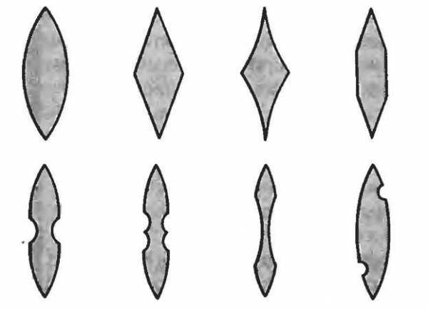 Переход сечения клинка в хвостовик, во избежание излома, не должен иметь острых внутренних углов. Переход должен быть как можно более плавным, равномерно сужаясь к концу хвостовика.