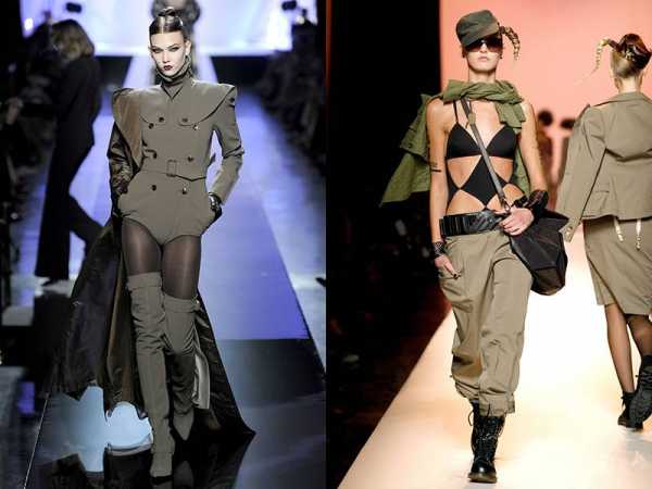 Военный стиль в одежде продолжал свое развитие и широкое распространение по всему миру. Острую популярность приобрели вещи, похожие на форму военных моряков и летчиков. Жан-Поль Готье для своей новой коллекции взял в качестве примера образ известной американской летчицы 30-х годов Амелии Эрхарт. Также французский кутюрье сделал привычным образ моряка, создав массу моделей на основе полосатой тельняшки.