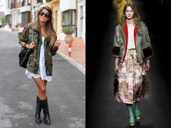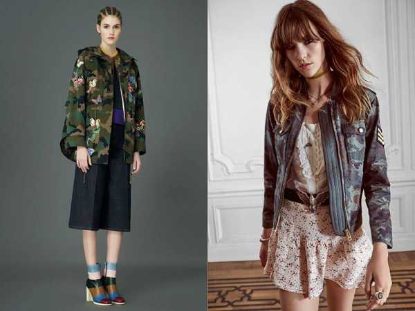 При конструировании новых фасонов дизайнеры чаще всего используют прямой крой, четкие линии, минимум отделочных элементов и камуфляжные цвета.