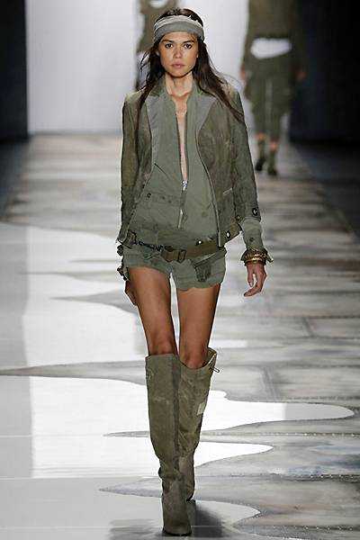 Современный военный стиль одежды называется в среде модельеров high-military. Эта разновидность модного течения не придерживается жестких границ при создании новых образов. Приветствуется сочетание различных стилистических элементов с небольшими вкраплениями армейской атрибутики.