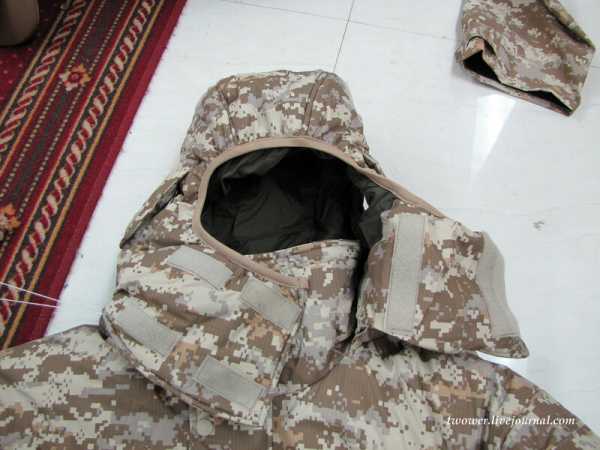 Костюм утепленный ветрозащитный бежевой камуфлированной расцветки. Основной материал: 100% ПА плюс мембрана ПТФЭ