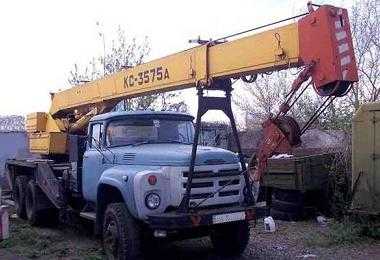 Автокран КС-3575А грузоподъемностью 10 тонн смонтирован на шасси автомобиля ЗИЛ-133 ГЯ или МАЗ-6303 и оборудован двухсекционной стрелой длиной 9,5 м, которая при телескопировании головной секции удлиняется до 15,5 м.