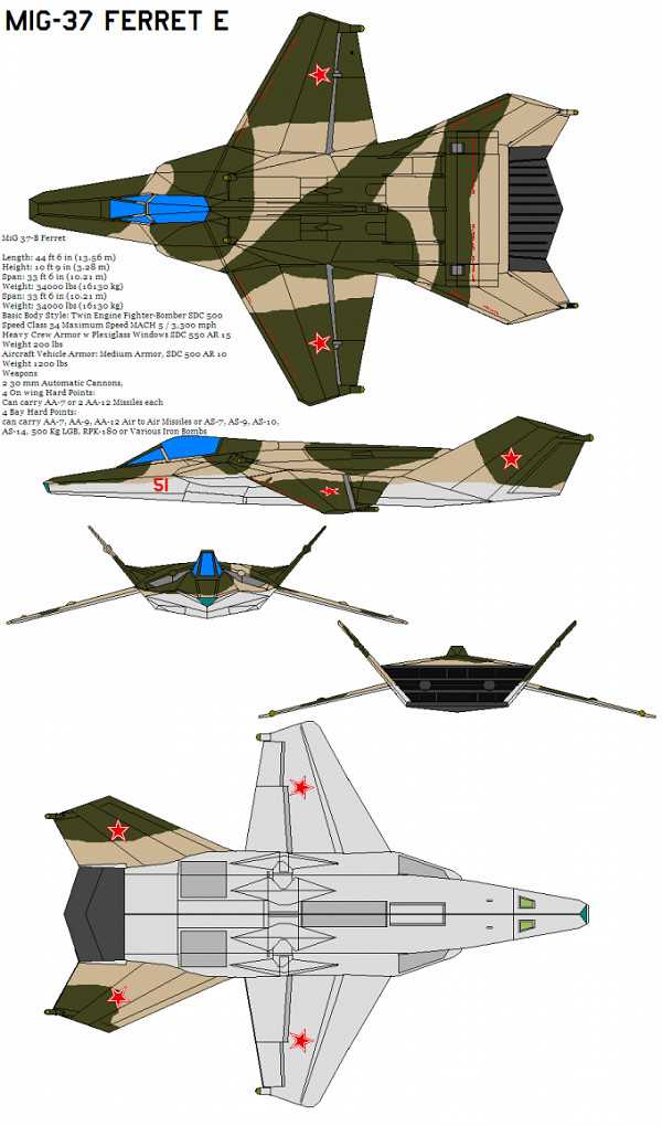 МиГ-37 — stealth-истребитель, использующий новейшие космические и авиационные технологии СССР.